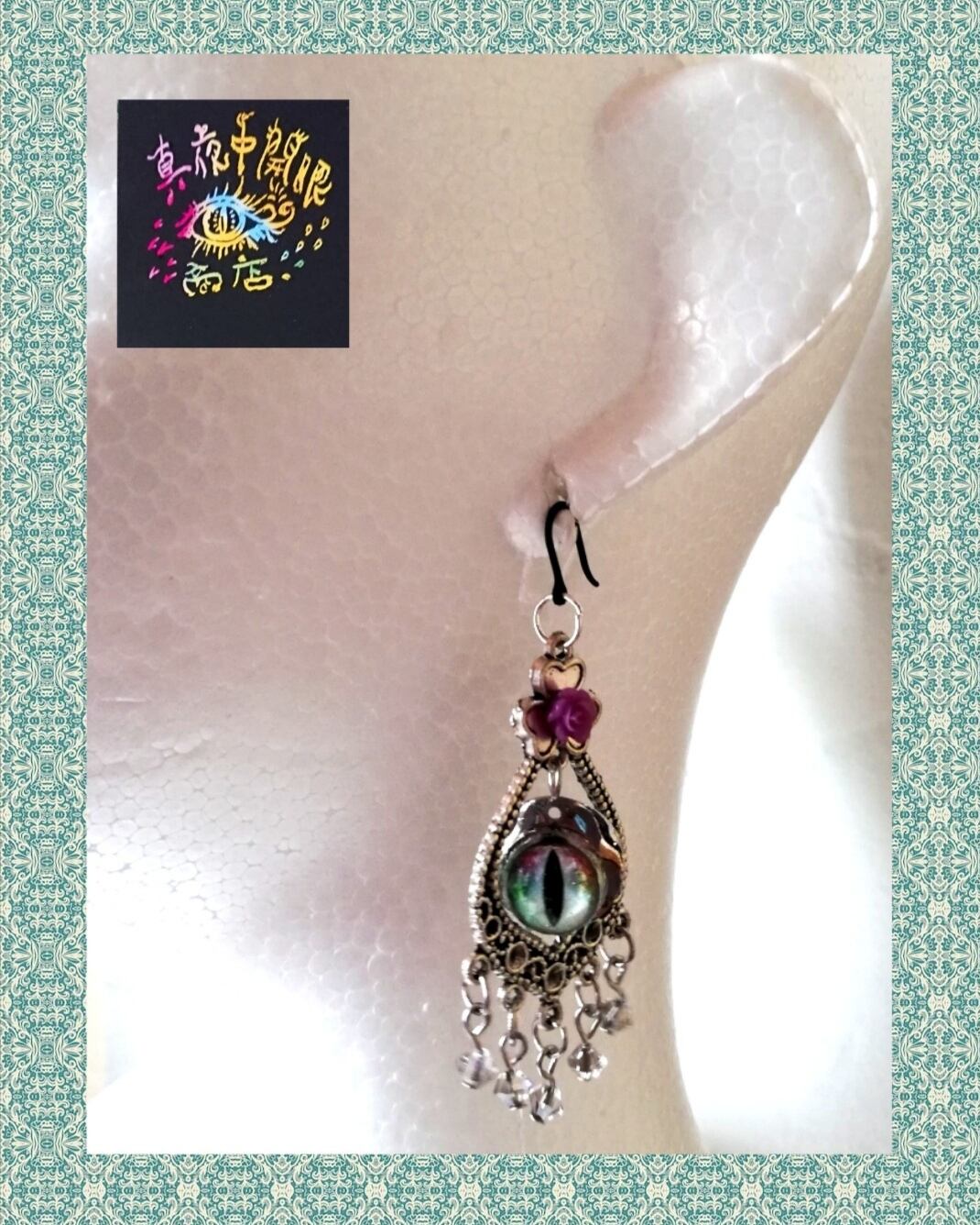 銀色邪眼ピアス·イヤリング(緑·桃色mix)