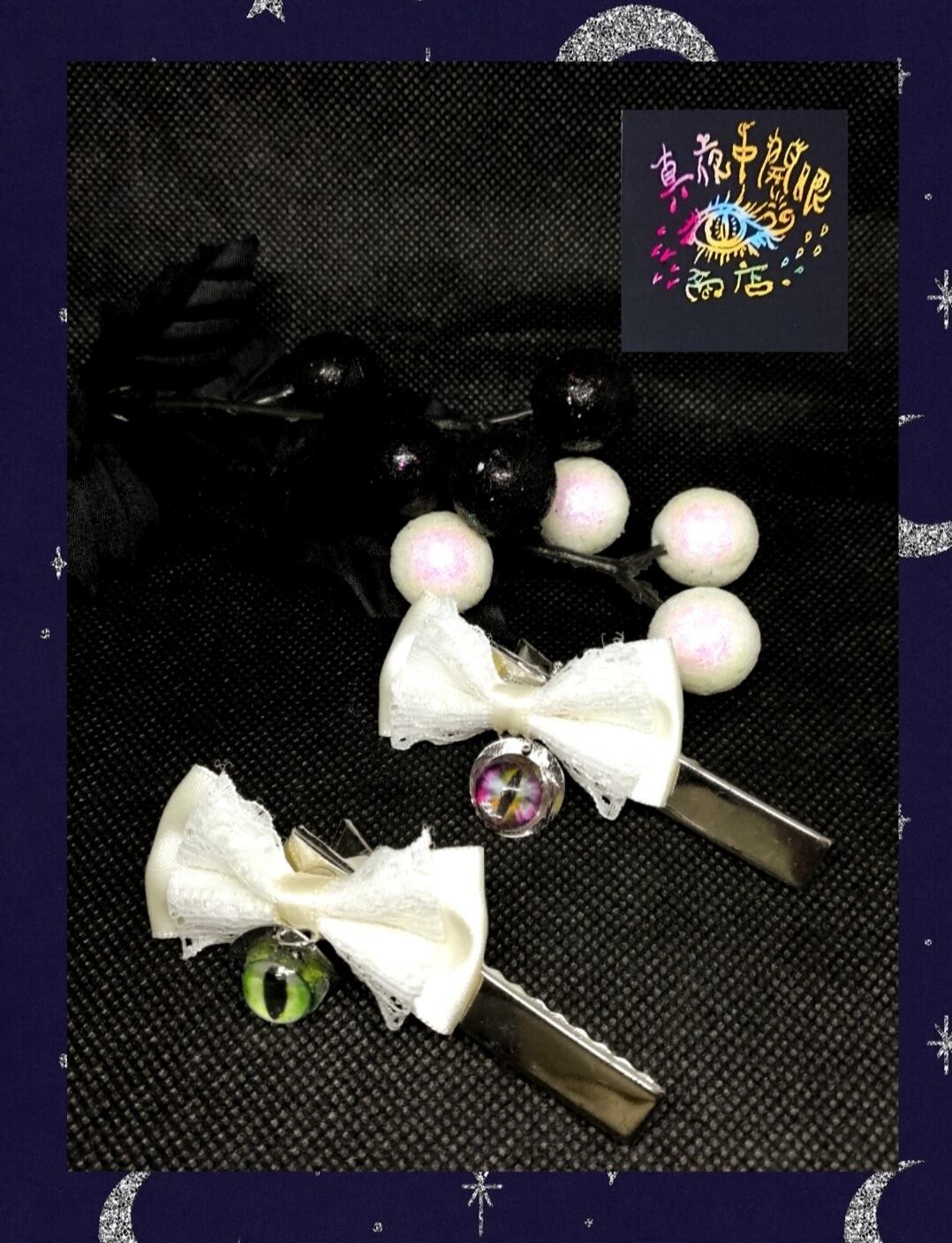 リボンと邪眼のヘアクリップ(白)