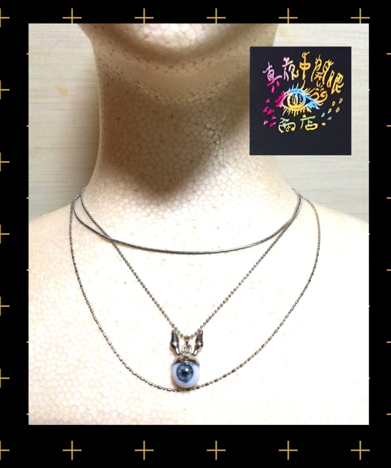 小さな闇帽子を被った人邪眼を三連チェーンのアクセントに仕上げました。
