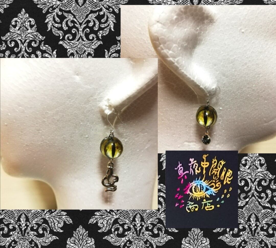 蛇のアシンメトリー銀色邪眼ピアス(イヤリング)