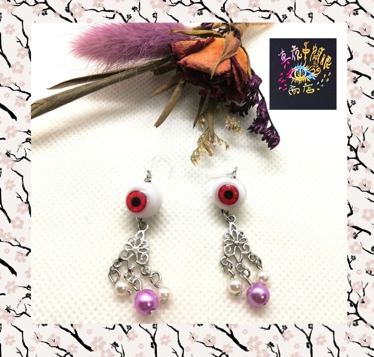 銀色人邪眼ピアス(イヤリング)ドリームキャッチャー風