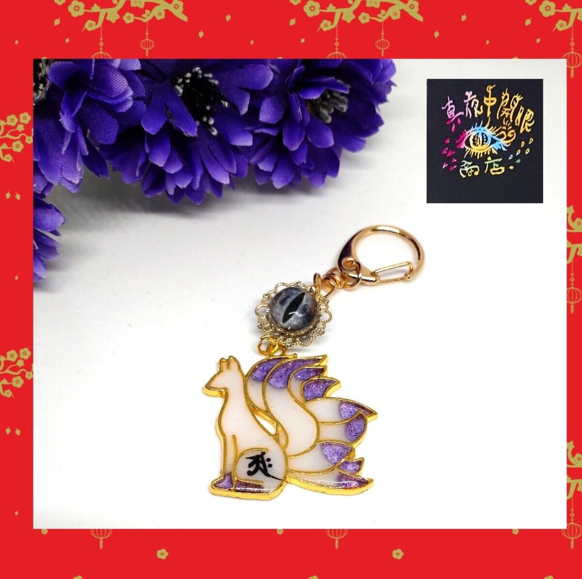邪眼と梵字宿す九尾の狐キーホルダー