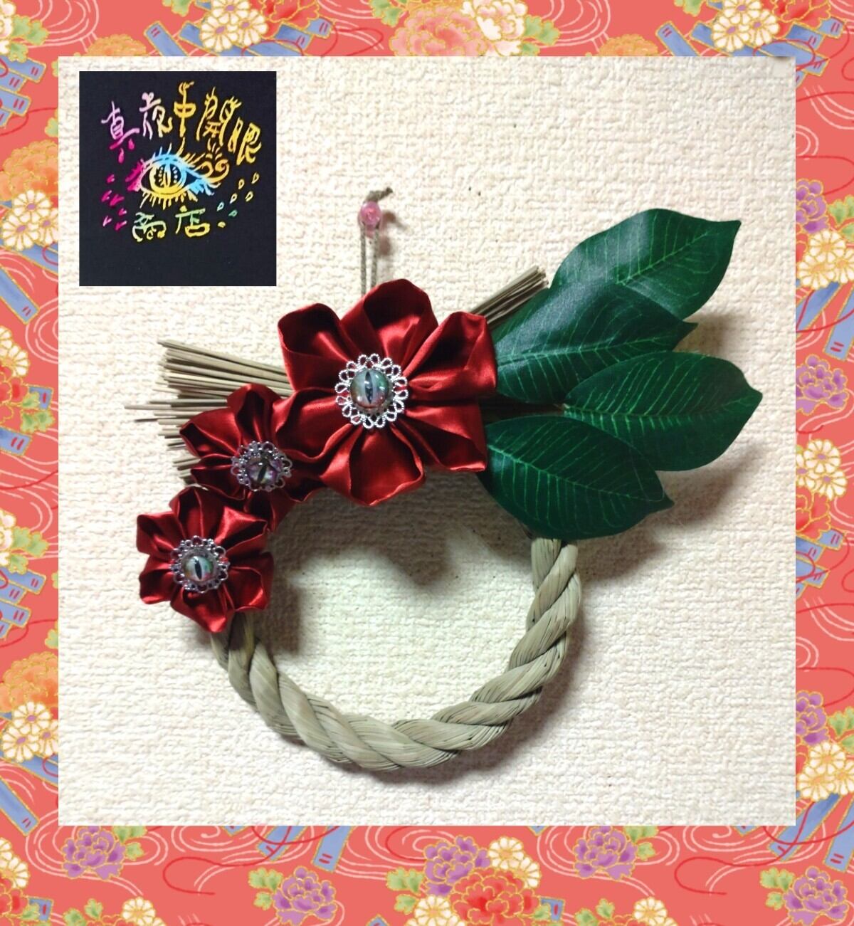 眼球の花咲くしめ縄リース、お部屋にいかがでしょうか。