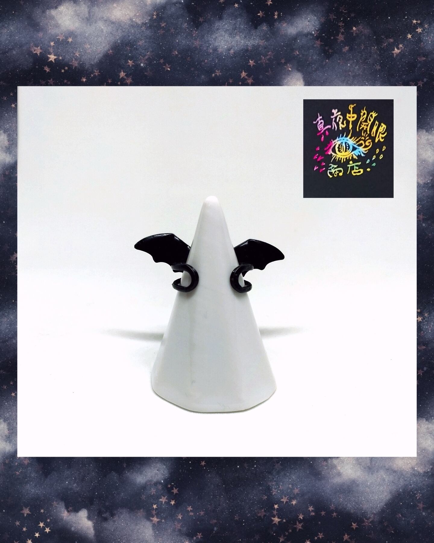 蝙蝠が眼球を携え、羽を広げたDarkで目立つリングです。
